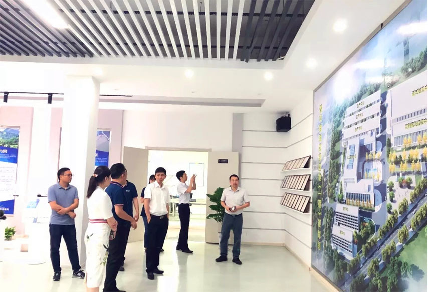 參觀過程中,基地常務(wù)副總經(jīng)理胡成浩引導(dǎo)各領(lǐng)導(dǎo)分別參觀公司的榮譽(yù)專利展示墻、整體規(guī)劃布局圖并做詳細(xì)講解。